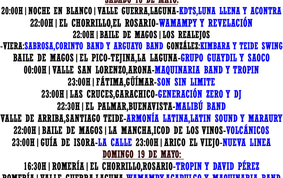 🇮🇨🎵Nos ponemos el traje de mago y nos vamos de romería para Guía de Isora 🎵🇮🇨. ¡Ven a pasarlo en grande! 💃🕺 Estaremos acompañados de los compañeros de @orquesta_lasabrosa 🤩. 📅 Domingo 19 mayo 🕞 A partir de las 15:30h. […]