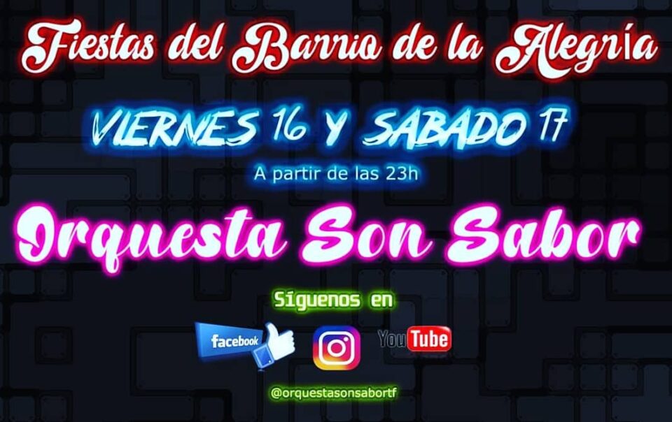 Este #viernes 16 y #sabado 17 te esperamos en el Barrio de la Alegría en SC. ‼Toda la info en nuestro #facebook_page ‼ #barriodelaalegria #santacruz #santacruzdetenerife #fiestassantacruz #orquestasonsabor #orquestascanarias #orquestastenerife #orquesta #verbenas #verbenastenerife #verbenascanarias #tenerife #islascanarias #canaryislands #musica #musicaenvivo #musicaendirecto […]