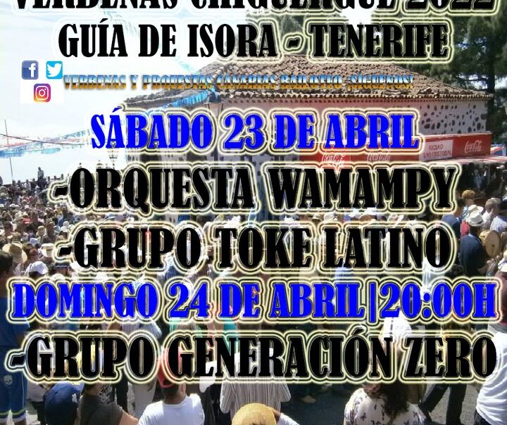 VERBENAS CHIGUERGUE 2022 – GUÍA DE ISORA – TENERIFE SÁBADO 23 DE ABRIL -WAMAMPY -TOKE LATINO DOMINGO 24 DE ABRIL:20:00H -GENERACIÓN ZERO #chiguergue #GuíadeIsora #guiadeisora #tenerife #tenerifesur #verbenas #orquestascanarias #canary #canaryislands Source