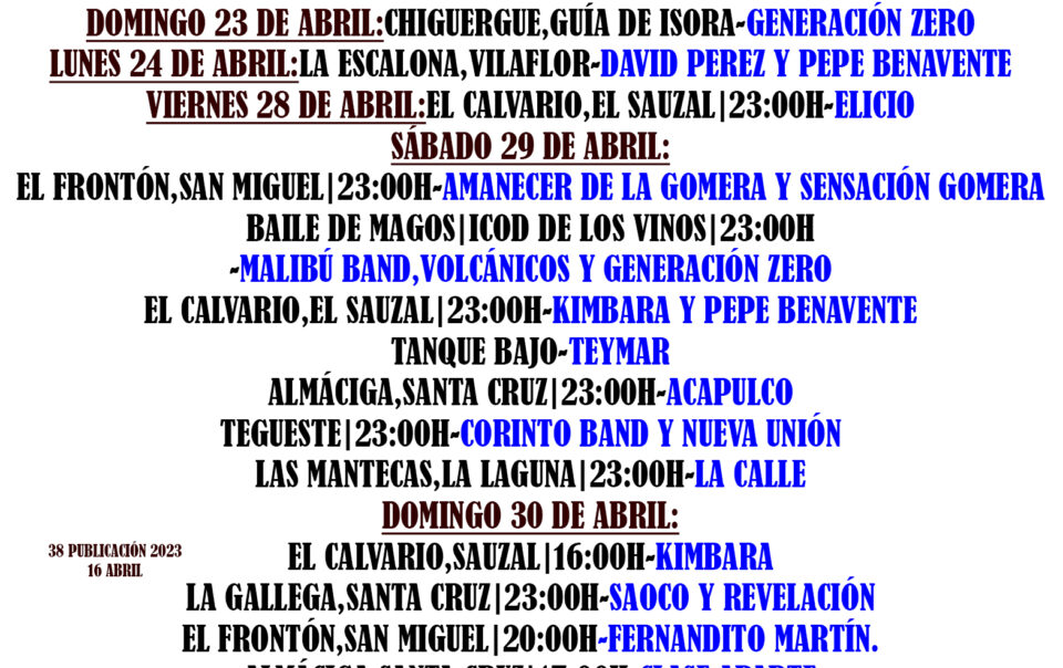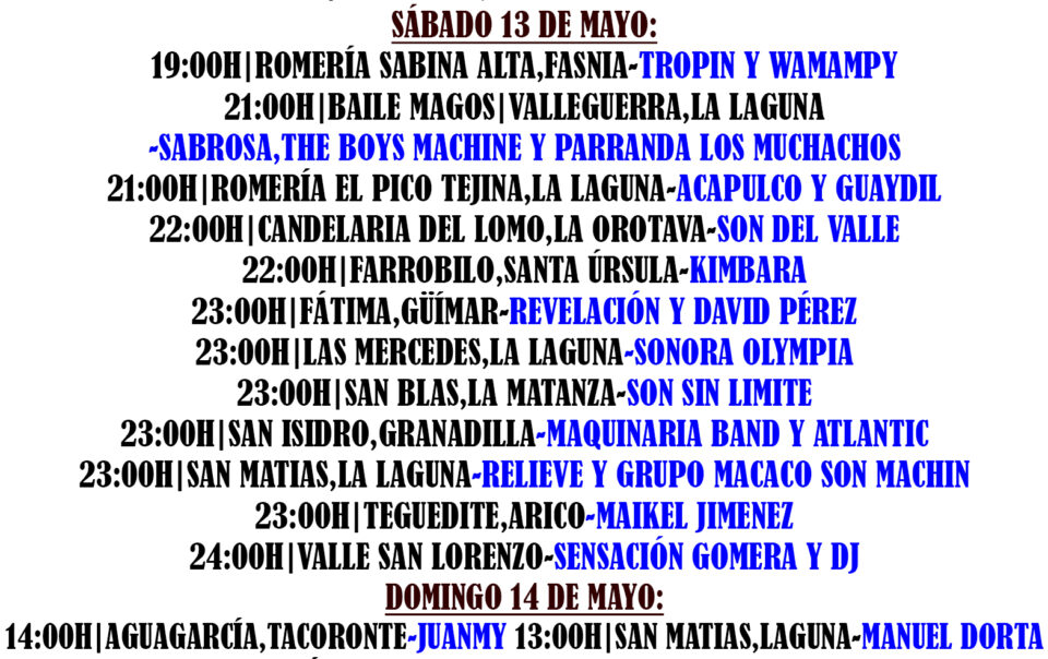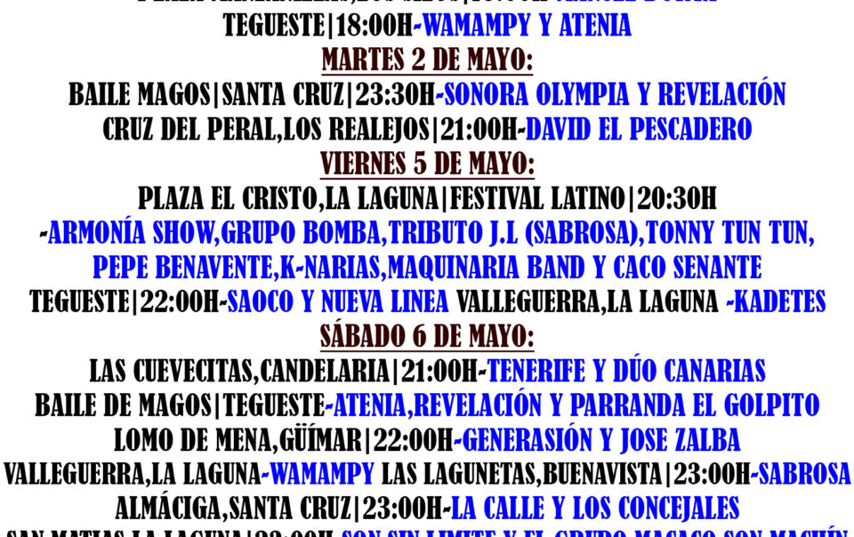 Como es el día… les recomiendo un remix , con casi 10 años , por aquella época andaba por la radio… Mas información de las semanas siguientes actualizadas en: https://verbenascanarias.webcindario.com/web/index.php #tenerife #tenerifelicidad #canarias #islascanarias #canaryislands #verbenas #quesuerteviviraqui #romería #bailedemagos #orquestascanarias […]